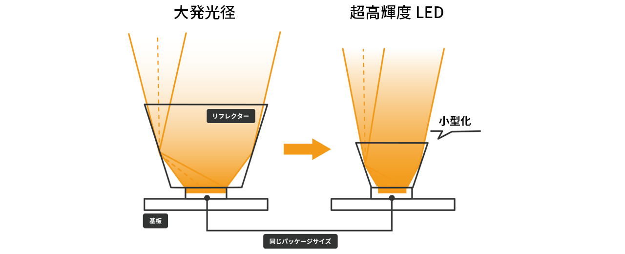 小型・薄型化を可能にするLED
